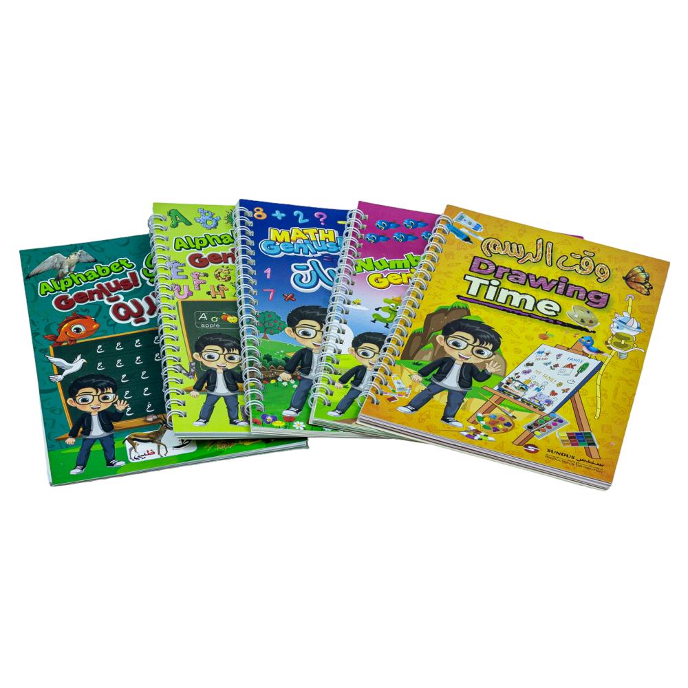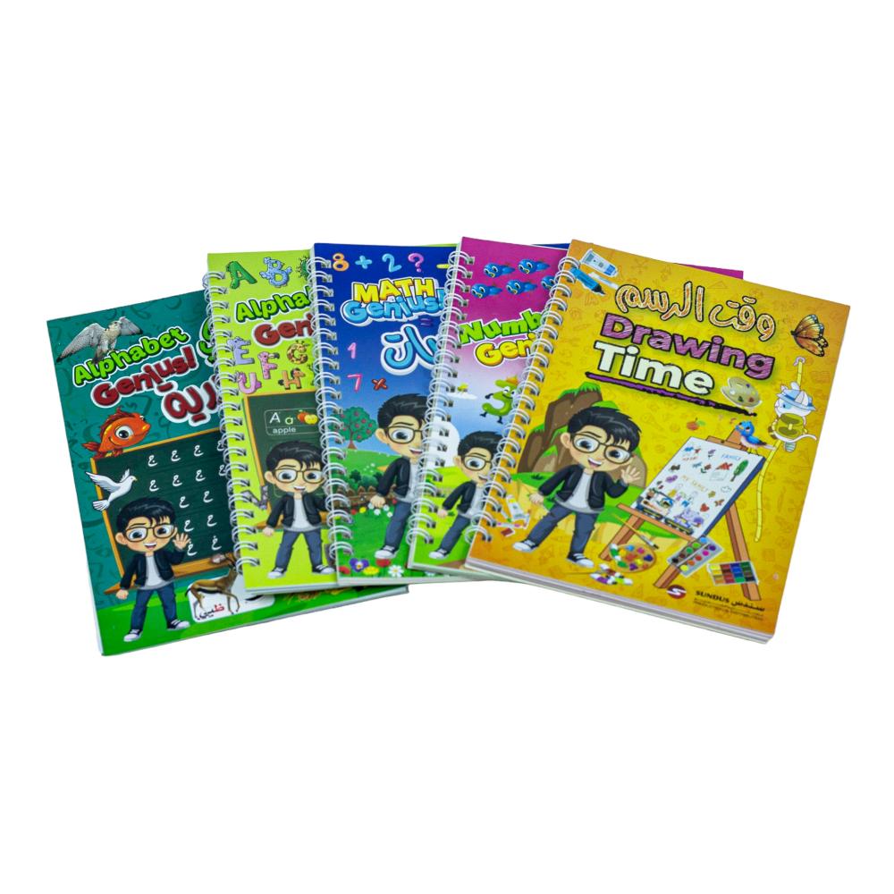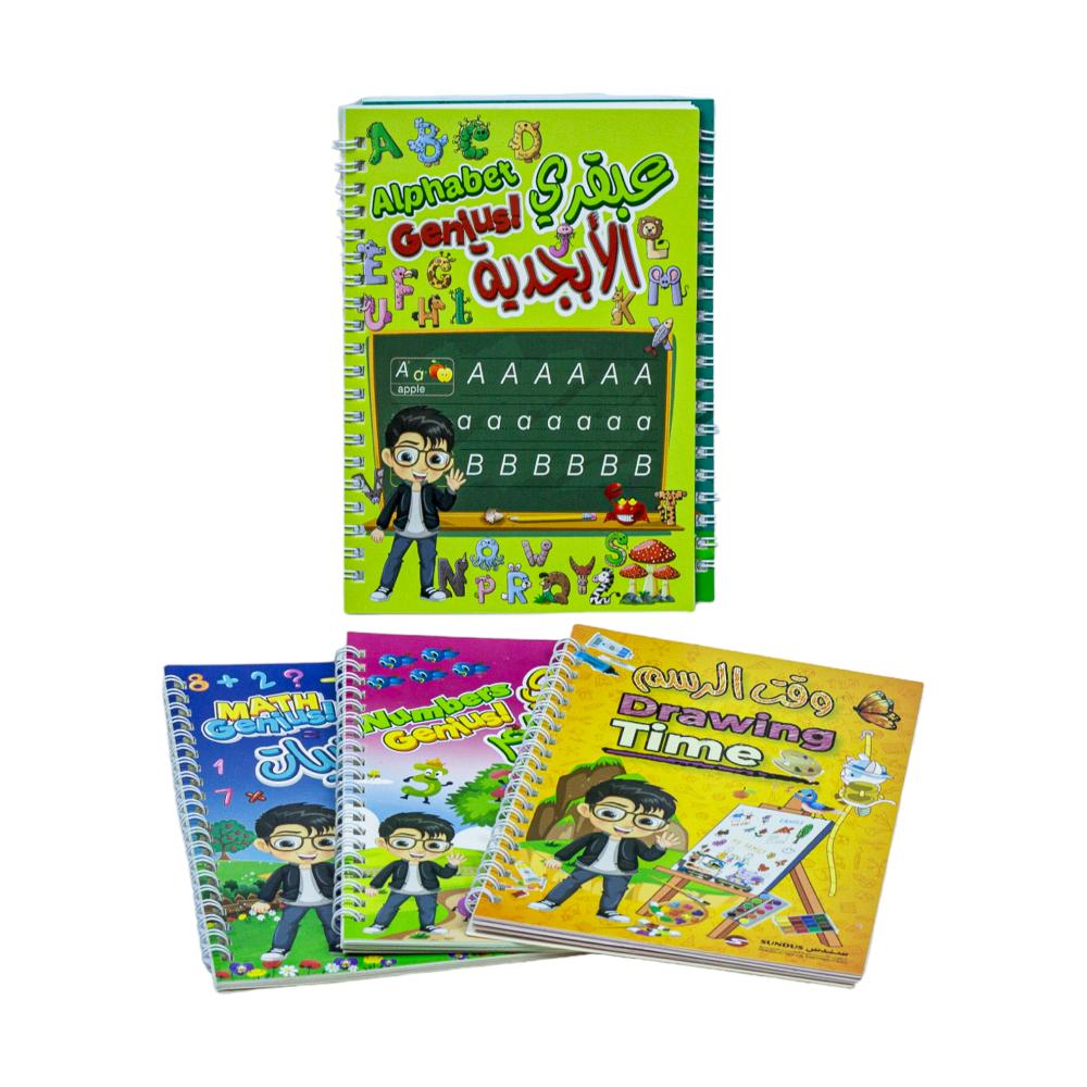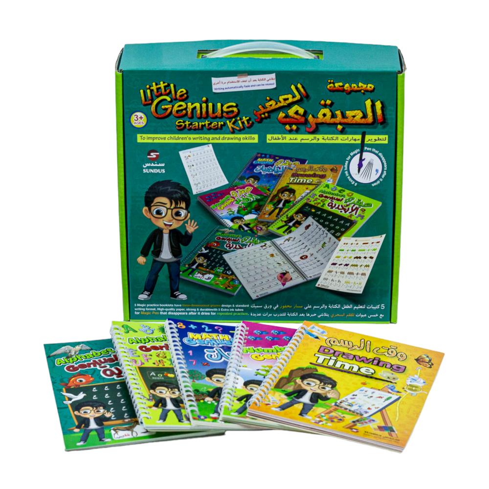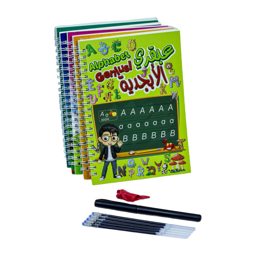 ساعد طفلك على تنمية مهاراته في الكتابة والرسم بطريقة تفاعلية وفعالة مع مجموعة العبقري الصغير التعليمية! تتكون من دفاتر تعليمية سحرية صممت خصيصًا لتحفيز الأطفال على التعلم باللعب، باللغتين العربية والإنجليزية.